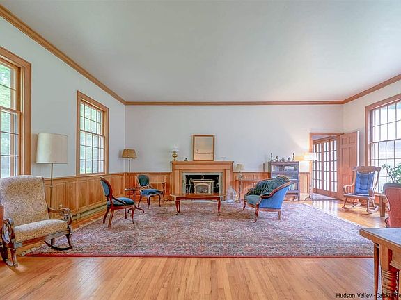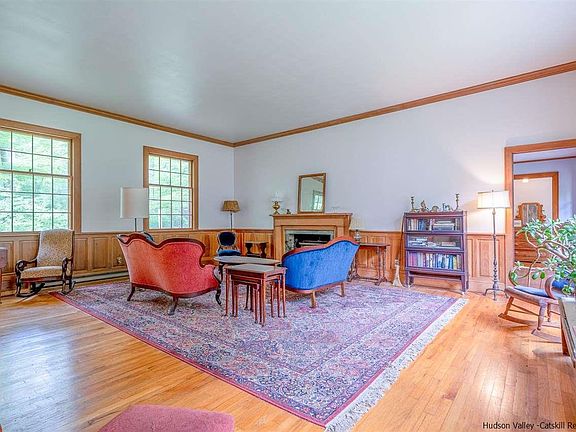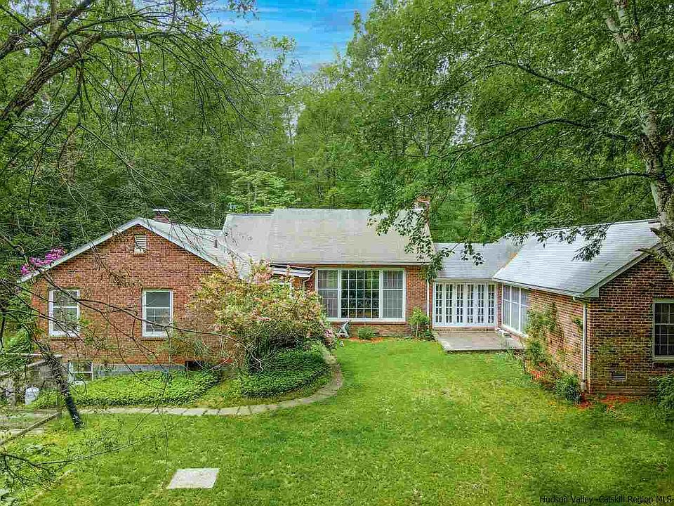 Beautiful Woodstock home, close to everything yet completely private, first time on the market. The original owners have put a ton of love and care into building & maintaining this Brick Ranch Home. Impeccable landscaped gardens, trees and shrubbery greet you as you pull into the driveway and lead you to the entrance. Big open living space with oak floors, high ceilings, custom woodwork, fireplace, tons of windows and natural light. Large country EIK boasts cook stove, 2 sinks, fridge, pantry, a Dutch door and an authentic early 1900's Imperial Stove. Primary bedroom has tons of space and great views of nature out the many windows. It also has a woodstove, large walk-in closet and private entrance into the full bath. The guest wing, conveniently located on the far end of the home is separated from the main section of the home by a charming breezeway which has 3 floor to ceiling doors that lead out to the back patio. The 3 guest bedrooms and another full bath are located down a super bright and spacious hallway with extra large windows. Every window of this home looks out onto nature, you can't help but feel peaceful here. Outside the level yard is surrounded by trees and there is a fully fenced in vegetable garden with premium soil. All this, only a a few minutes drive to the center of Woodstock.