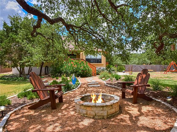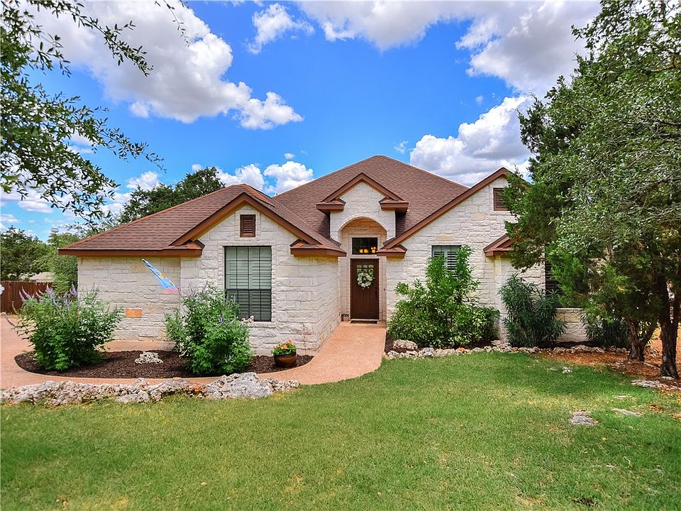 Gorgeous 1900+ sq.ft. home on two rare remarkable lots equaling .6+ acre to enjoy in wonderful Wimberley. Mature trees, nature and privacy in your own back yard. Three bedrooms, two full baths with an additional office/study/flex room. Open living room to breakfast bar and kitchen dining area with large windows for scenic views. Beautiful stone corner fireplace in living room. Crushed slate floor entry way welcomes you to living room with rich scrapped wood floors. Granite counters in kitchen, stainless appliances, double oven and center island. Two access doors to your fenced back yard retreat. Covered back porch with extended balcony. Plenty of space in the back yard for a sports play area, gardening, pets and sitting around a fire pit. Window treatment in place plus upgraded shutters on the front windows. Side swing in garage with extra paved parking. Crown molding, vaulted ceilings, stone counters in bathrooms and many more custom upgrades. This is a must see "love this one" home!