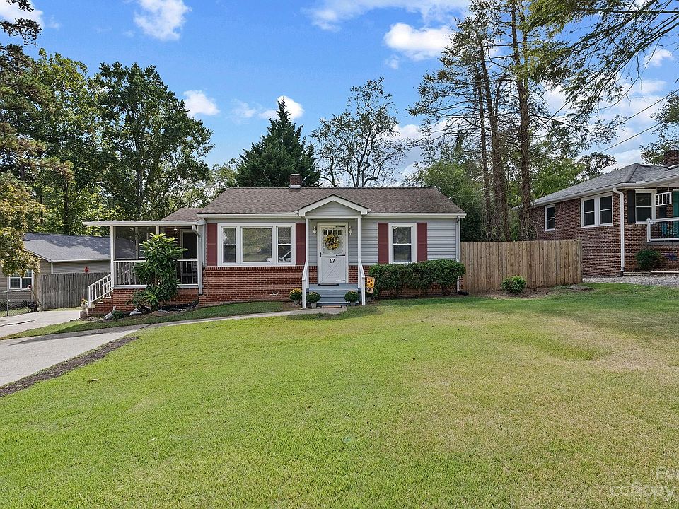 Fabulous cottage in the heart of south Asheville. Just minutes from Biltmore Village, this cozy home sits on a level .27 acre lot with fenced in backyard and deck. A large covered side porch welcomes you home from the driveway. Eat-in kitchen with laundry opens up to a sunken den with large brick fireplace and insert woodstove. Fresh paint throughout. Inviting eat-in kitchen with laundry. Heat pump with a natural gas furnace backup and a newer hot water heater. Oak hardwood floors in living room, hallway and bedrooms. Close proximity to Mission Hospital, the Blue Ridge Parkway and downtown Asheville.
