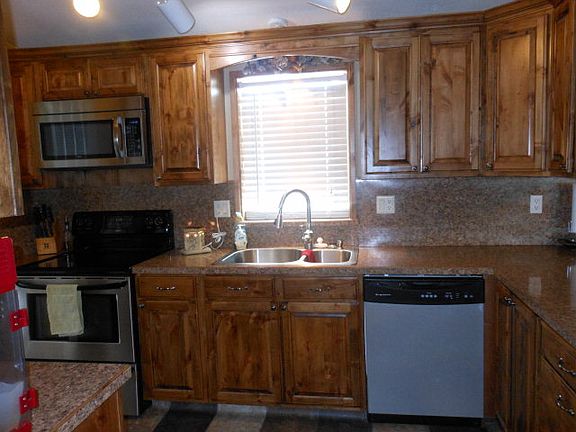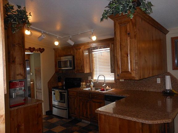 Home is just like new and move in ready with new roof (30 year shingles), new mastic verticle siding with new insulation, new vinyl windows, new front door, new plumbing, new drain field, all bedrooms have new sheetrock and texture, new flooring and paint, new electric heater with heat pump and AC, newer water heater. Some new lighting and interior doors. Kitchen is new with custom knotty alder cabinets with lots of extras and new appliances, pantry has custom built shelving. Nice laundry room also has new custom cabinets. Both bathrooms have tile. All bedrooms have walk in closets with lots of storage. Home is fully fenced with chain link fence and some 6 foot privacy slats. Home includes a 28 x 40 shop that was built in 2008 and has metal roof and siding. Shop has cabinets for storage and a work bench/area. Shop is fully insulated, drywall, floor drain and plumbed for water but not connected. Yard has some concrete curbing and concrete blocks with an area great for bbq's and entertaining in the summer. Come see this home and all that it has to offer.