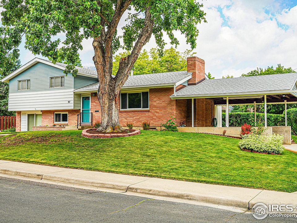 WOW! Spectacular well-maintained, professionally renovated home with Flatiron views! Move-in ready home radiates refinished oak floors, new kitchen, 2 updated baths, fresh paint, mature landscaping, and secluded patio. Premier corner lot in quiet neighborhood with elementary school, park, Bear Creek trail, and city bus within 2 blocks. Restaurants, grocery and hardware stores, shopping, and businesses within 5-minute drive. Close to University, downtown, the foothills, and US-36. Lovingly cared for by the original owners of 61 years, this professionally renovated, move-in ready spacious home also features plenty of natural light throughout. New kitchen appliances, LED recessed lighting on the main floor, ceiling fans with LED lights in upstairs bedrooms, water heater, and roof in 2021. Flatiron views from 2 bedrooms, yard, and patio. Gas fireplace with beautiful stack stone masonry, office/hobby nook with ample countertop and storage, built-in desk with cabinets and shelves, spacious storage room, large work shop, south-facing lawn surrounded by 6-foot privacy fence, private backyard with covered tiled patio accessible from the kitchen sliding glass door, sprinkler system, over-sized 2-car carport (460 sq. ft.) that could be enclosed if desired with extra room for RV parking, 9'X10' storage shed and 2 storage cabinets. Peaceful neighborhood just 2 blocks to Creekside Elementary School, large city park with tennis courts/ball field/pavilion, Bear Creek trail, and post office. Easy access to city buses, RTD park-n-ride, and US-36 to Denver. 5-minute drive to grocery stores, restaurants, banks, gas stations, and hardware store. Less than a 10-minute drive to the foothills, hiking/biking/walking trails, historic Chautauqua Park, downtown Boulder, Pearl Street, and retail businesses. Enjoy the great outdoors with a short drive to the breathtaking Rocky Mountains inclusive of Estes Park, ski areas, camping, fishing, hiking, biking, rafting... and all else imaginable!