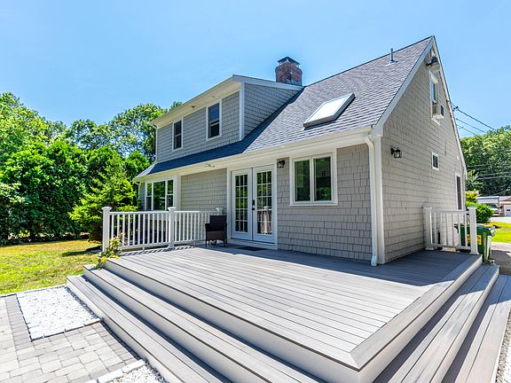 Renovated 3 bedroom/2 bath 1500+ sq. ft. Cape within less than a mile to Mashpee Wakeby Pond for plenty of summer fun. Front foyer welcomes you into the open floor plan featuring living room with Bay window & wood burning fireplace which easily flows into the new cathedral white kitchen/dining with stainless steel appliances, tile backsplash, quartz countertop & French door to large deck for summer BBQ's and stone patio with fire pit for evening relaxation. 1st floor bedroom, home office & full bath complete the main floor. Upstairs you will find 2 additional bedrooms, full hall bath & laundry area. Luxury vinyl plank flooring throughout with tile floors in the bathrooms. Newer roof, Andersen windows, oil tank, etc. Buyers/buyers agent to verify all information contained herein.