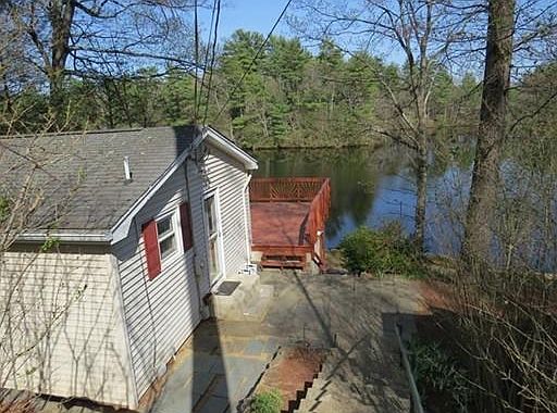 100 Sandy ft of Beautiful frontage in "The cove" on the South Basin of Hamilton Reservoir. Hamilton Reservoir is a fully recreational lake with great fishing. The "cove" is a quite peaceful neighborhood in a large cove off of the main lake. Enjoy the peace, quite and beautiful views of the cove, in this year round home. The home is on a double lot and has many perennials in its teared garden beds and elaborate stone walls. Large deck,screened in room below and built in outside fire pit make for great outdoor entertaining space. Open floor plan. One bed and one bath on main floor and One bed and One bath in finished walk out basement. Sale will include extra lot across the street, great area for extra parking and storage. Easy commute from Boston,Springfield,Worcester and Hartford. Close to I-84 and the Mass Pike.