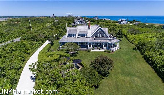 Perfectly sited across from Sankaty Head Golf Club, this renovated custom built home offers stunning views of the ocean and Sankaty Lighthouse from the second floor along with unobstructed sunsets. A four bedroom main house, one bedroom guest cottage, room for a pool and pool cabana on over two plus acres provides ultimate serenity and privacy. Freshly updated with three floors of living, expansive wrap around porches and separate stone patio make for seamless integration for outdoor entertaining. This peaceful oasis is just moments from 'Sconset Village, Sankaty Head Golf Club and pristine beaches along the East end of Nantucket!