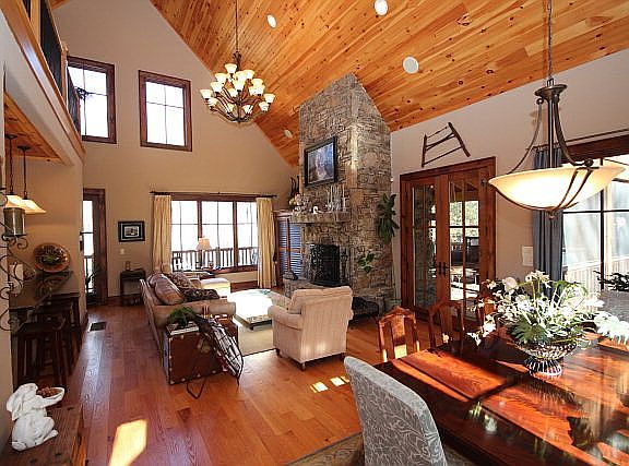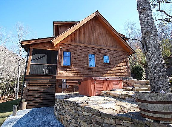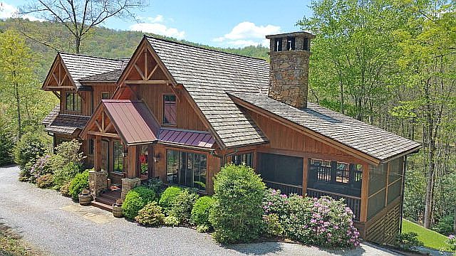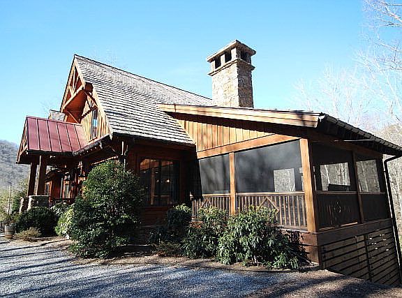 Experience the ultimate mountain retreat! If peace, quiet, relaxation, listening to the creek, and exceptional mountain views are on top of your checklist, this could be your opportunity to own this magnificent arts and crafts style home. This home is located in the private, gated, low-density River Rock development with flowing creeks and multiple waterfalls and is only seven minutes from Lake Glenville and 17 minutes from Cashiers. This arts & crafts home is noteworthy in every architectural detail. The quality of this home is exceptional and in immaculate condition. The dining room features 8' tall windows with views of the mountainside and features a vaulted wood ceiling with pendant lighting and is contiguous to the great room and kitchen. A screen porch provides additional entertainment space. The master bedroom features a private screen porch and a large master bath with a shower and soaking tub. From the screen porches and rear balcony deck, enjoy spectacular western mountain vistas and views of the flowing creek. A large loft overlooks the great room 10 feet below and is nestled into the intersecting gable wood ceiling with reclaimed timber ridge beams and features views of the mountainside and the fireplace and provides a separate gathering space outside the bedrooms. The two guest bedrooms are equally generous in size, each featuring mountain views and a large closet with an adjacent shared bathroom. Enjoy the outdoor hot tub during the day which overlooks the mountains, or at night gazing at the stars. The generous lawn is perfect for family sports or sunbathing. Alongside the creek is a picnic table, making it the perfect spot for lunch. A walk along the footpath provides relaxing enjoyment of the creek. This home is perfect for the nature loving family wanting seclusion, privacy and security, yet close proximity to town.