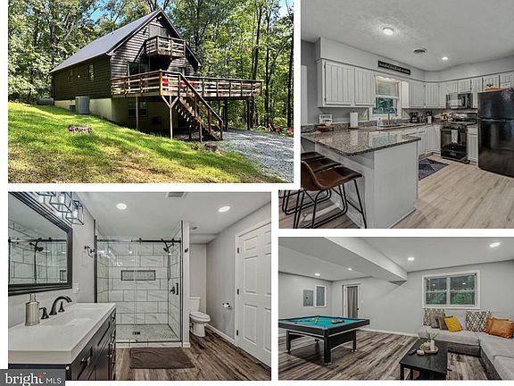 This beautifully renovated home with 2276 finished sq. ft. is perfect for full-time living or as a vacation rental, offers a serene retreat surrounded by trees. Renovated in 2022, it features a new metal roof and a fully finished basement with a luxury bathroom. The secluded property is accessed via a winding driveway through the trees. Inside, you’ll find granite countertops in the kitchen, a great room on the main floor, and a family room on the lower level. On the main level the house has the great room, 1 bedroom, and 1 full bath, on the upper level are bedrooms and a half bath, and on the lower level there is a family room, a den, and a luxury bathroom. Outdoor amenities include a large deck and a fire pit, perfect for relaxing and enjoying the local wildlife, such as deer, turkey, foxes, and squirrels. Located close to Berkeley Springs, you have easy access to dining and shopping. For outdoor enthusiasts, the nearby Sleepy Creek Wildlife Management Area offers hiking, fishing, boating, and hunting, while Cacapon State Park provides opportunities for hiking, swimming, and horseback riding. Additionally, Harpers Ferry, WV, is a great spot for sightseeing.