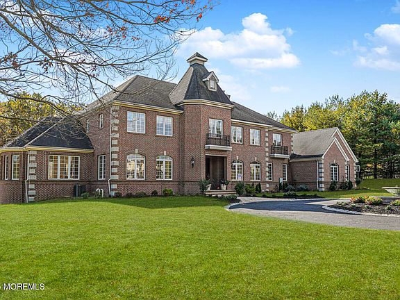 Nestled on a meticulously landscaped 1.27 acre lot in the prestigious township of Colts Neck, this striking all brick estate, built in 2002, presents an impeccable blend of timeless architecture and modern luxury. With approx 6000 square ft of living space (without walkout basement) the residence offers 5 bedrooms and 5 1/2 bathrooms. The circular driveway leads to a grand double door entrance and a two-story foyer defined by travertine stone flooring and a sweeping ''cinderella' staircase. The grounds feature a deck, and huge gunite, salt water, and heated pool.