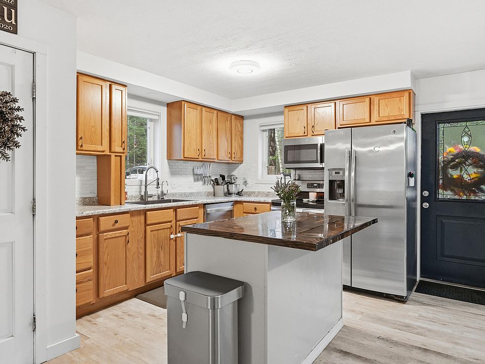 This exquisite contemporary home, originally built in 2001 and newly renovated in 2018, offers three bedrooms and one bathroom within an open-concept kitchen and living area. Situated in a serene and private natural setting, fenced in yard ideal for kids and pets, this property provides peace and quiet while remaining conveniently located just a short drive from local amenities and schools.