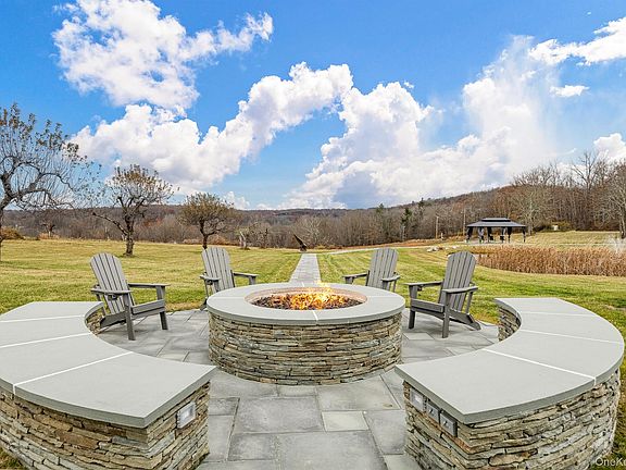 Outside: All brand new: Never-ending Bluestone walkways and patios that lead you to the enormous in-ground pool, jaw dropping kid’s play area with zipline, handmade stone gas fire pit with seating, beautiful pond with fountain, hardtop gazebo, and large barn. Stonework, copper gutters, Hardie-board siding, lightning system, and much more.