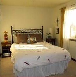 unit has wall to wall carpet with four closets; Sunny, cheerful apartment home with many windows and skylight in main living area. The unit has new carpet, full kitchen with adjoining dinette, split bathrooms (toilet room separate from bathroom) and 1 parking space (carport) included. Laundry onsite