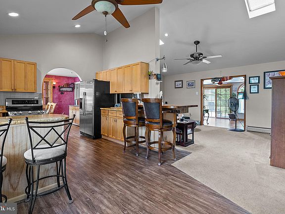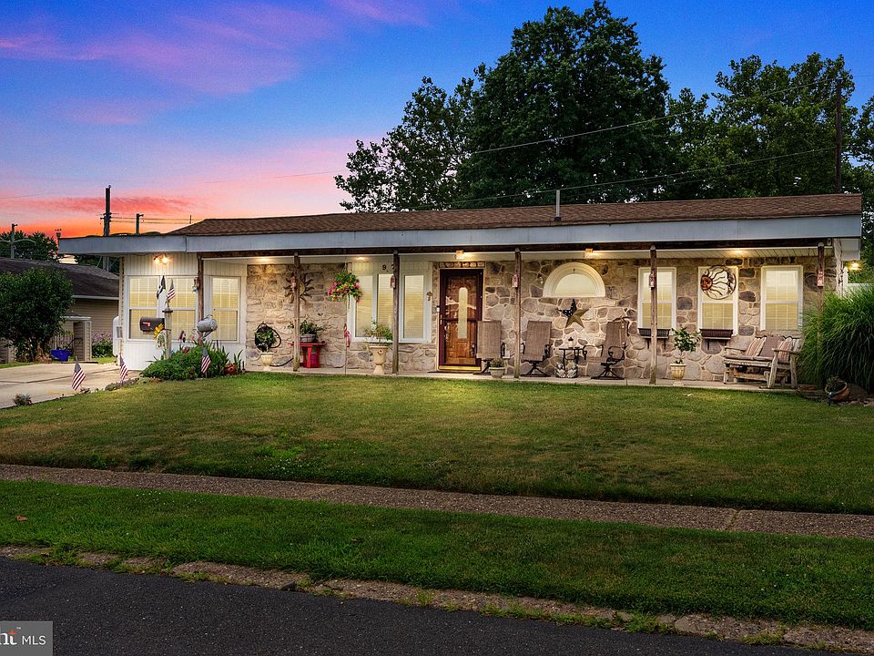 Welcome to 97 Violetwood Drive. This expanded rancher is sure the check all your boxes! Notice the great curb appeal as soon as you arrive. The beautiful stone front exterior with oversized concrete driveway and large covered patio welcomes you home. This is not your average Levittown home! You will fall in love the vinyl flooring throughout and cathedral ceilings when you open the front door. Beautiful, open concept kitchen with updated wooden cabinets, granite countertops, and newer appliances. Enjoy the large breakfast bar with custom lighting that opens up to the living room with skylights, allowing for tons of natural sunlight in. Trending archway leads you into the oversized dining room with the cutest bay window seat, the perfect spot to unwind after a long day. This home offers three bedrooms. The master bedroom is oversized (two bedrooms made into one large one) with a full walk in closet and its own private outdoor space area! A nicely updated, full bathroom in the hallway conveniently located near bedrooms. This home offers a second living area in the back of the home, making it the perfect space for anything your lifestyle requires, maybe a home office, playroom, gym, or second living room? The opportunities are endless for this space. Laundry area, another large closet, home workshop area with second refrigerator, half bathroom, and a glass sliding door with access to the backyard complete the inside of this home. No oil here, enjoy the upgraded propane heat and new roof! Come spend the rest of your summer in this backyard oasis. Covered patio with fan, electric, and built in heater is the perfect spot to entertain guests! Uncovered wood deck overlooking the pool and fire pit really completes this outdoor space. Come make this house your new home, don’t miss out on your opportunity to own this awesome home.