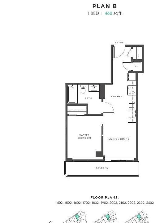 Modern full appliance package, including in-suite washer & dryer
