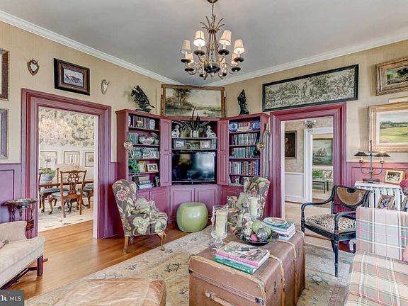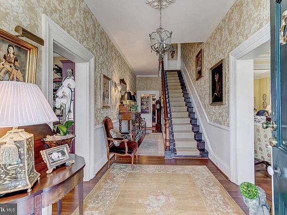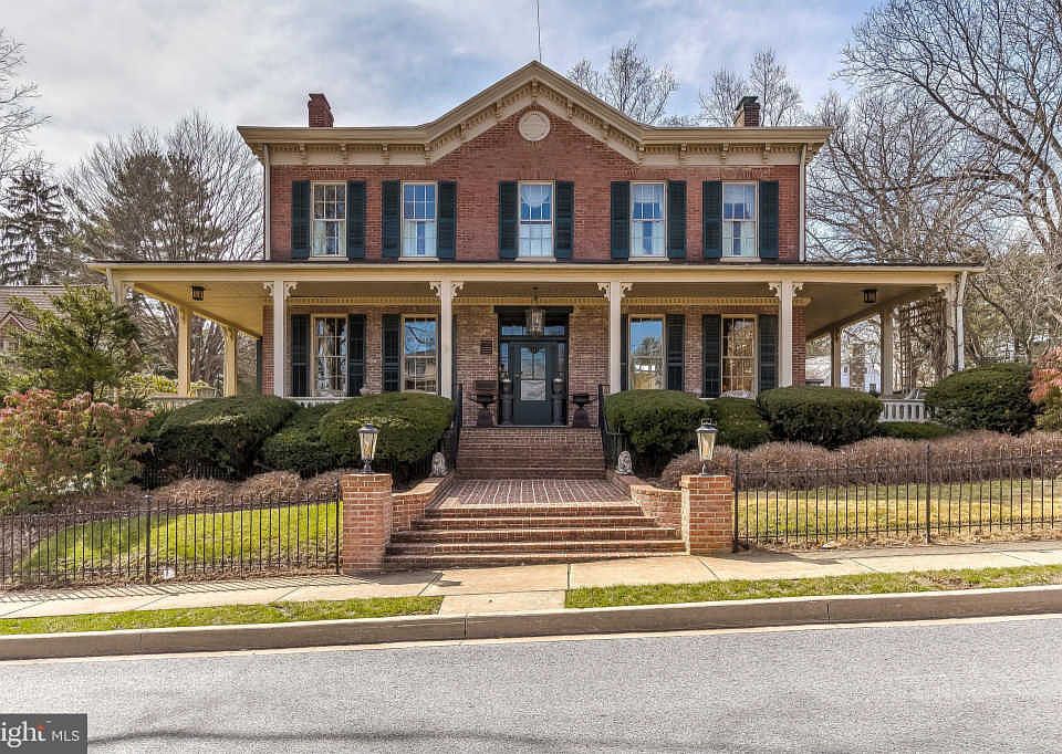 Gorgeous brick exteriors and a large corner homesite set the stage for this historic Victorian beautifully renovated for luxurious modern living while maintaining the circa 1851 design elements and finishes. A wrap-around porch with timeless bracketed posts creates a welcoming approach to the 4,200 sqft home presenting exceptional detail, plantation shutters, rich hardwoods, stunning custom millwork (including crown moldings, chair rail trim, & wainscoting), five fireplaces, and subtle architectural qualities preserving the elegance and character. Revolving around a central hall, the spacious interior features a library with built-ins and a brick fireplace, a formal living room with a cozy fireplace, and a formal dining room enhanced by a detailed ceiling medallion with an art deco display, custom china cabinets, and a lovely sitting room surrounded by sparkling windows. Adjacent to the great room and fashionably arranged for easy entertaining, the gourmet kitchen and breakfast room boast wood ceilings and exposed walnut beams, a brick surround fireplace, built-in shelving and ledges, pine cabinetry, sleek counters and ample prep space, a breakfast bar, and stainless steel appliances. A walkout to the sunroom leads you to al fresco dining options, paver patios, an outdoor brick fireplace, lush greenery, a gazebo, and several serenity gardens. Privately situated, a main level guest bedroom or owner's suite offers a sitting area, a bay window, plentiful closet space, and a luxe en-suite with a striking mural statement wall. The next level hosts the additional bedrooms - including a second suite with a sitting room and built-ins - and a bright laundry room that opens to a roof-level terrace. This versatile space is complete with a winter canvas and screen wrap covering that can be easily removed during summer to create a sun-filled veranda overlooking the lush grounds. New roof in March 2020! Set in Westminster's Historic District, this residence has appeared in several publications, magazines, and home tours, and has been dubbed as "The Prettiest House in Westminster"!