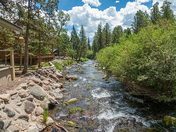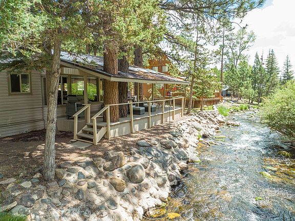 Here's a special property that must be seen to truly appreciate it, in order to picture yourself on the covered back porch that fronts Mammoth Creek's rushing, soothing waters that will lull you to sleep for that afternoon nap enjoying fresh mountain air. The main home features two spacious bedrooms, open kitchen & dining area (which of course, overlooks the creek), large living area with wood burning stove, huge laundry and storage room, two full baths- one with jetted soaker tub-, and lots of natural light making each room bright and inviting. The star of the show is the creek, whose waters run year round and originate from a large spring further up the road (excellent picnic area). The casita features two bedrooms, each with it's own entry, and a shared bath. The homes are meticulously kept and show pride of ownership. Detached garage for your vehicle & mountain gear. Log entryway at driveway. Association is voluntary & supports the fire department & community. Annual events are held at the fire station including pancake breakfast. Sold turn-key, furnished, ready to be enjoyed! Private well with 1/2 acre ft water rights. Winter access would be by snowmobile or hired plowing.