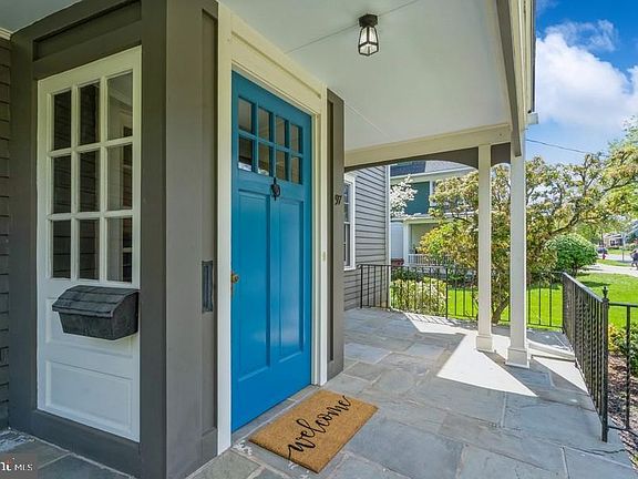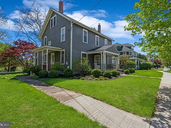This lovely center hall colonial built in 1887 was originally designed as a single family home, but was converted to a two family home during World War I. Since 1989, the current owners restored the house back to its original single family design, much to the delight of the former owners of the home. This was one of the original farmhouses on the west side of town and S Lanning Avenue was its original driveway. By 2001, the kitchen and baths were completely renovated including the addition of the breakfast nook with its three sides of windows and views of the backyard and the farm land beyond. Even the commissioned dining room mural is inspired by the rolling hills and farmhouses surrounding the property. And in 2017 overtop of the new roof, the owners installed the 7kw solar panel system which is fully paid for and produces a very low electric bill per month, a green investment which is the envy of other environmentally conscious homeowners. The annual street block party is a special gathering of neighbors and friends and with the preserved open park of 50 acres at the end of the street, many fellow townspeople can be waved at as they meander by, many with their dogs in tow. And easy access to downtown with its many restaurants, the public library and elementary school plus locally owned shops, post office, drug store and theater, is either through the park or by the streets, which makes this the tree village you'll want to call your own!