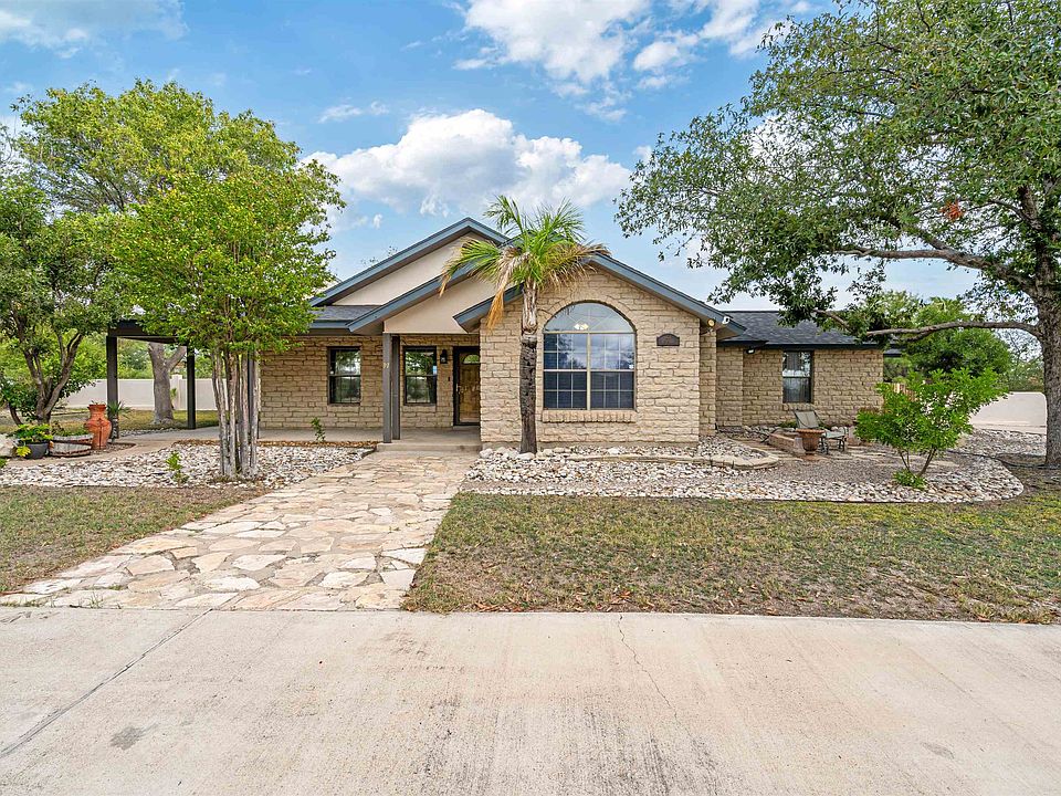 Welcome to 97 Skyview Dr., a stunning 4-bedroom, 2-bath home sitting on 2.5 acres that perfectly blends the peace of country living with nearby conveniences. From the moment you arrive, the circular driveway and full stone exterior create a welcoming first impression while the tall privacy wall up front adds a sense of seclusion and charm. Step inside to a cozy, inviting interior featuring a fireplace, new flooring, freshly painted cabinets, and brand-new stainless steel appliances. The spacious living areas are perfect for entertaining. The wrap-around porch brings a true country and farm feel and is ideal for sipping your morning coffee, enjoying evening sunsets, or watching local wildlife like deer roam the property. The front sitting area offers an additional cozy spot to relax and soak in the serene surroundings. Outside, mature trees, beautiful landscaping, and a partial sprinkler system enhance the natural beauty of the land. You will feel like you are out in the country while still being just minutes from schools, restaurants, and shopping, giving you the perfect balance of serenity and convenience. With room to roam, spaces for entertaining and relaxing, and upgrades that bring style and comfort to every corner, 97 Sky View Dr. is more than a home. It is a private country retreat where modern living meets farm-style charm.