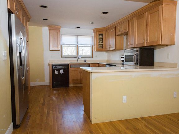 Auction Dates: 4/1 to 4/3. Rustic colonial, drenched in sunlight and situated on a large corner lot (1/3 acre). Hardwood floors throughout. Kitchen features Corian countertops, ample counter space, stainless-steel appliances and wood cabinets. Master bed with en-suite and walk-in California closet. All three beds have cathedral ceilings, HW floors and large closets. Baseboard heating (double-lined oil tank in basement). Full unfinished basement has walk out with French doors. Newer washer/dryer. Master bathroom has en-suite, however, this 2nd bathroom is unfinished (no sink or toilet).Wrap-around Trex deck, French doors on the side. Picturesque yard (partially fenced) with ivy covered trees. Storage shed in corner. Gravel driveway, room for 6 cars.