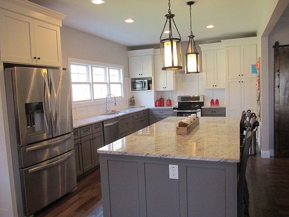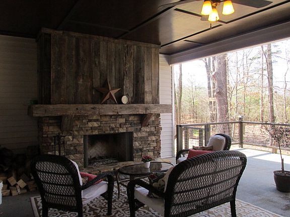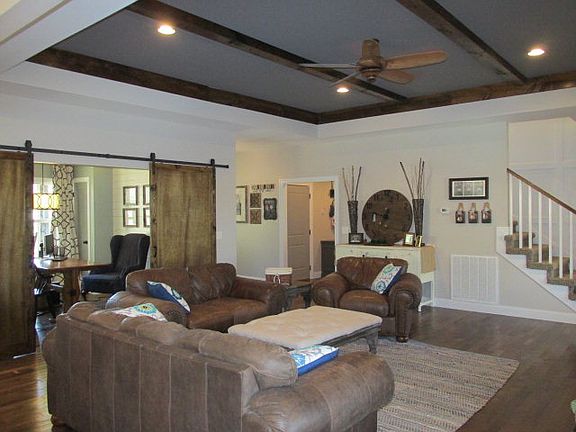 Modern Country Charm, Southern Living Dream home! Living Large Floor Plan features white marble granite counter tops-8x4 island , 9ft ceiling. Coffered ceiling in greatroom with Fireplace, Vaulted Dining Room exits to covered Porch(25 x 25) with stacked stone fireplace featuring antique mantle and modern railings. Separate Large office is highlighted by the barn door enclosures. Hardwood floors.