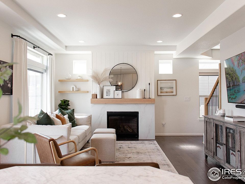 Welcome to 970 Auburn Drive - where modern living meets mountain views in the heart of Erie Highlands. This beautifully upgraded 3-bedroom, 3-bath home offers the perfect blend of luxury, comfort, and community. Step onto your expansive custom deck complete with a retractable awning and enjoy mountain views - ideal for morning coffee, evening wine, or entertaining under the stars. Inside, enjoy a light-filled open layout with a remodeled gas fireplace, floating wood shelves, and premium flooring throughout the main level. The gourmet kitchen boasts a walk-in pantry, large island, gas range, and direct access to your outdoor living space. Upstairs, find three spacious bedrooms - all with walk-in closets, including a primary suite retreat with mountain-facing windows. The second-floor laundry room adds extra convenience. Need more space? The full unfinished basement with rough-in plumbing offers endless possibilities for expansion - media room, gym, guest suite - you name it. Located just steps from multiple Erie Highlands Parks and the community pool, clubhouse, and fitness center, plus top-rated schools and scenic trails. This is not just a home - it's a lifestyle upgrade.
