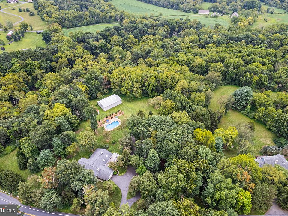 Peaceful and private describes this amazing property with a real stone ranch with 4 bedrooms and 3 ½ baths on a sprawling 21 acres with a new inground pool and huge pole barn! A circular driveway leads you to the front entrance of the home, with a covered front porch and window boxes. The entry foyer is tiled and there is a coat closet and opens up to the large living room, with a lovely bay window, a brick wood burning fireplace and recessed lighting. The dining room is conveniently located right off the kitchen and has wainscoting and modern chandelier. The spacious kitchen will be a delight to cook in with a center island with seating and storage, tons of counter/cabinet space, a wood stove, skylight, large walk-in pantry and updated appliances. There is a beautiful sunroom with breakfast area, a sitting area with a wall of windows overlooking the massive back yard and pool area. There is also a wood stove and access to the large Trex deck. The laundry room has storage and a washer and dryer. Down the hall, you will find a full hall bath with tub/shower combo, 2 bedrooms with large closets and an ensuite with a large closet and shower stall in the attached bath. The primary ensuite comes with a very large walk-in closet, built-in shelving, sliders to the sunroom and a full bath with a shower stall and separate tub/shower combo and a double vanity. The lower level has a recreation room with a sink and cabinet area, pellet stove, tile and carpet, windows, as well as a sound-proof workroom, additional unfinished space for storage, walk-out exit to the rear yard, walk-out stairs to the garage, a Bilco exit, as well as a convenient powder room. A walk-up, floored attic is perfect for all your storage or finish it off for even more living space. The 2-car attached garage is oversized and has a laundry sink for easy clean up and access to the lower level. There is a detached 1-car garage with a second story, a utility shed, a pool house, a large lean-to and a massive 40 x 68 pole barn with electricity, perfect for all of your year round toys. The heated Gunite in-ground pool is surrounded by lovely stone pavers and is completely fenced in. You can walk down to Tulpehocken creek and enjoy the forest trail along the back stretch of the property, or enjoy a night under the stars at the campsite. There is 2-zone heating/ac, new luxury vinyl plank flooring, generator hook-up, a fish pond (fish included) and beautiful, mature landscaping. Close to Heidelberg Country Club, Koziar’s Christmas Village and Blue Marsh Lake, the home is currently being used as a successful Air BNB. Simply too many amenities to list….this one is a must see!
