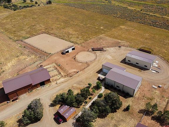 Welcome to your extensively appointed horse property nestled on picturesque 39 acres with over 8,000 SF of high-end outbuildings. You'll enjoy the peaceful, tranquil landscape that offers 5 pastures with 4 of them being fully fenced, an arena, corral, and loafing shed. The deluxe 3,800 SF barn features 4 stalls, each with its own paddock and freeze-proof automatic waterers for fresh water year-round. The enclosed, heated tack room has a utility sink with hot water and plenty of storage with the tack racks and blanket bars. There is an abundance of space and height to store hay as there are two entrances allowing bale wagon access. You will then move to the 40'x60' heated workshop with two 20' overhead doors and a car lift to shelter your projects and collection from the weather. This workshop also has an enclosed woodshop with table saw and 240 volt shop power. Attached is a 24'x26' pull-through garage to load your horse trailer with minimal effort. To the east, there is a fully enclosed 20'x57' pull-through RV storage replete with a 220 electrical hook-up. Attached to this building is a 30'x59' carport/covered area to protect all your farm equipment from the elements. You then will wind your way through the Austrian Pines, piñon and lilacs up the stairs on the north deck to an inviting ranch home with welcoming space for all. Upon entering the multi-level 3 bedroom, 2.5 bath home, you'll enter the living room with multiple windows and a double door out to the large covered deck facing the Black Ridge Mountains to the west. The outdoor living space lives grand and perfect for entertaining while showcasing the magnificent sunsets only found in these beautiful parts of Southwest Colorado. The hall leading from the living room to the kitchen allows access to the laundry room and half bath. You'll then have your breath taken away with the custom cabinetry in the kitchen with a bar island, two refrigerators, a double electric oven, and gas stovetop to create memories of a lifetime. Off the dining room, you enter the east facing deck with more outdoor living space to watch spectacular sunrises with your morning beverage. Upstairs is a well-apportioned primary en suite bedroom with impressive views of the La Plata Mountains and a walk-in closet. You also have two bedrooms and full bath, all offering views in every direction. At the basement level are 2 car full-sized garage with a semi-finished area that could be enclosed for additional living space. All measurements are approximate. The land is currently not irrigated and 15 Shares Priority 65-27 in the HH Ditch will transfer with the sale. Buyer to investigate to their satisfaction. In case you are looking for additional living space, the adjacent property is also available for sale MLS #805599. This private retreat has natural beauty a plenty and endless possibilities. Call to book your showing today.