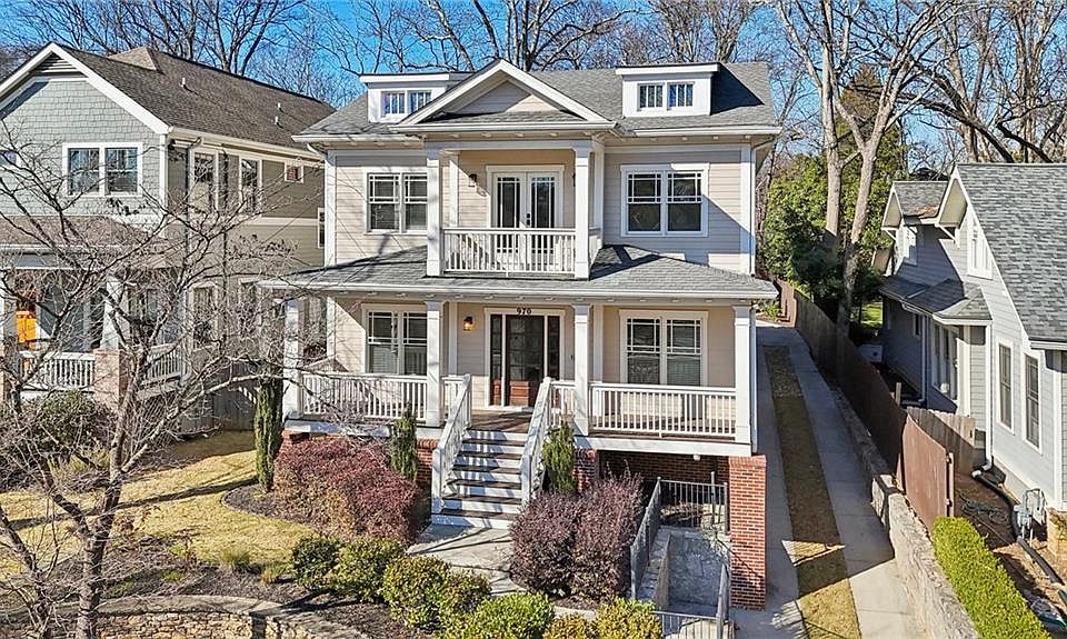 Welcome to the height of luxury living in Virginia Highlands. Classic elegance blends with modern style in this historic-style home. Designed for those who appreciate the finest in-town living, this home is situated in one of Atlanta’s most desirable neighborhoods. Just a 10-minute walk to the Atlanta Beltline and a mile from Piedmont Park and Ponce City Market. This supreme location is close to top restaurants and cafés, perfect for an urban lifestyle. With five major grocery stores, including Whole Foods and Trader Joe’s, just minutes away, convenience is effortless. Or if you prefer to shop farm to table, you can find all organic produce, local meats, breads, and flowers at the Morningside Farmer’s Market every Saturday year round. Living on Drewry Street you’ll enjoy the famous annual festivals, like the well-known Porch Fest concert series. Virginia Highlands is truly in the heart of culture and art. Step onto the welcoming front porch and enter the central hall. Here, classic architectural details create a unique living experience. Rich hardwood floors span all three levels, adding to the beauty and flow of this timeless home. To your right, the formal dining room boasts exquisite wainscoting and is complemented by a well-appointed butler’s pantry with ample storage—an entertainer’s dream. To the left, a versatile space can serve as a formal sitting room, home office, or private guest retreat, complete with an en suite full bathroom featuring luxurious marble tile flooring and shower surround. The chef’s kitchen is a statement in both style and function, featuring ceiling-height sage grey cabinetry, an oversized island with premium finishes, and a KitchenAid gas cooktop. The apron-front sink with a sleek gooseneck faucet and an expansive walk-in pantry with custom wood shelving provides both beauty and convenience. An adjacent breakfast room offers an intimate dining experience, while the elegant living room impresses with built-in bookshelves, a wood burning fireplace with gas starter, and seamless access to the screened back porch with flagstone flooring—creating the perfect setting for refined indoor-outdoor entertaining. Upstairs, you’ll find two roomy secondary bedrooms, each with its own full bathroom and expansive closets, providing ultimate privacy and comfort. The lavish primary suite is a sanctuary of sophistication, bathed in natural light and featuring dual walk-in closets. The spa-inspired en suite bath is adorned with marble tile, an oversized shower, double vanities, and a linen closet, with seamless laundry access from both the hall and primary bath. A sunny bonus retreat space with French doors leads to the upper balcony, where panoramic views of Drewry Street and the Atlanta skyline provide a breathtaking backdrop for relaxation. The lower level adds to the home’s luxury. It features an extra bedroom or recreation space, a full bath, and an enormous amount of storage. Outside, a detached two-car garage sits just steps from the home, while the partially fenced backyard includes a dedicated storage shed. This home seamlessly blends elegance, function, and an unrivaled location—making it a true masterpiece in Atlanta luxury living.