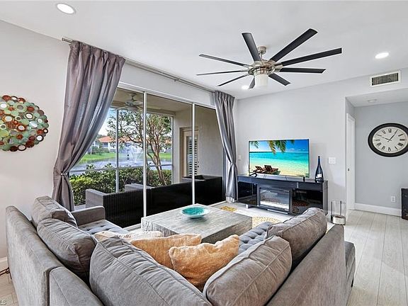 This updated TURNKEY 3 bedroom/2 bath/1 car attached garage FIRST FLOOR END UNIT condo is located in the sought after community of Egrets Walk of Pelican Marsh which is just minutes from all that Naples has to offer. Walk in the front door and be greeted with a light and bright open floorplan with wood look floors throughout, an abundance of windows with plantation shutters, updated kitchen complete with quartz countertops, stainless steel appliances, and wine cooler! The baths have also been fully updated with high end tile, modern vanities, and frameless shower enclosures. Enjoy lake and fountain views from the screened lanai. Just steps away from the community pool and clubhouse. NEW AC (2021) & hot water heater (2019). Egrets Walk also offers a private walking entrance/exit to Mercato! Pelican Marsh offers a vibrant community center with tennis, pickleball, bocce, fitness center, spa, pro shop, social rooms, social activities, restaurant/bar, and more! Pelican Marsh also has a Golf Club which boasts an 18-hole championship golf course. Pelican Marsh Golf Club is a private membership facility with a variety of golf, social and dining with memberships available (optional).