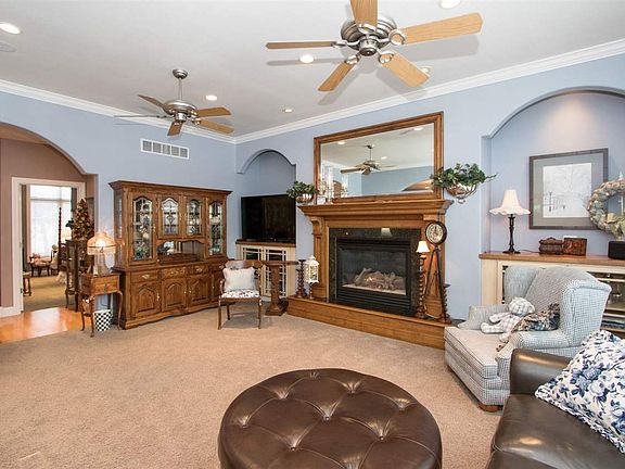 Elegant traditional home w/plenty of upgrades & amenities! Fabulous private wooded lot, view of pond. Fine craftsmanship, arched doorways, crown molding, trey & high ceilings, white millwork. Hdwd flrs. Custom fireplace w mirror crafted by Johannes Architectural Woodworking. Gourmet kitchen w/Birch cabinetry, island breakfast bar, granite + solid-surface counters. Grand master suite w/deck access. Master bath w/whirlpool tub, shower, heated flr, gigantic closet. Lg screened porch, deck w/pergola.