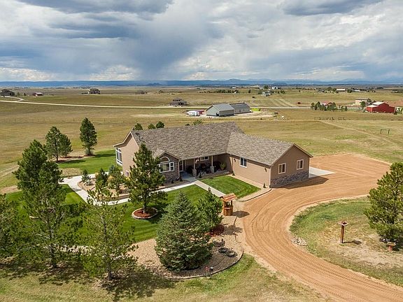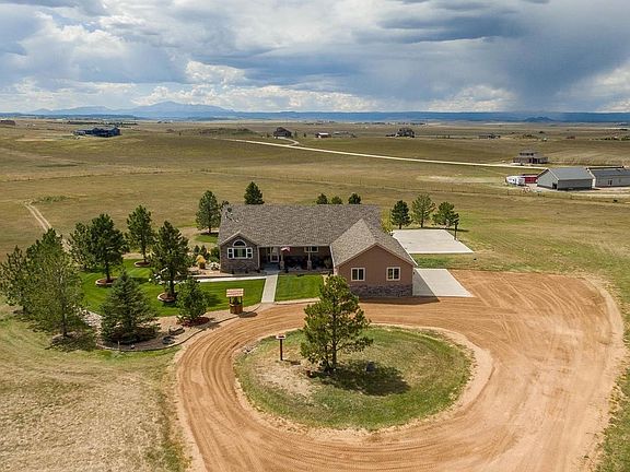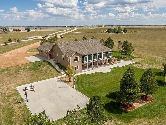 *This is the 5 bed, 5 bath + study custom ranch walk out w/ stunning mountain views you have been waiting for!*10 acres at the end of a cul-de-sac complete with an electric gate, fully fenced & professionally landscaped front & back*Gourmet kitchen w/ beautiful slab granite, hickory cabinets & stainless steel appliances that include a double convection oven & built in wine cooler*Lighted basketball court*Gas stubbed in on the lower patio for your firepit to enjoy the gorgeous views while making s'mores*Incredible attention to detail inside and outside*Enjoy your morning coffee & Colorado sunsets in your additional 460 SF sun room (SF not included in total SF) that features majestic mountain views & a propane heater*Finished walkout basement has 3 of the 5 bedrooms, 2 baths & a huge rec room and wet bar to entertain your guests!*