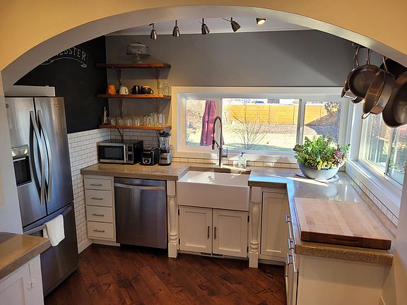 Available January 1st. This beautifully remodeled farmhouse on a large lot bordering Molholm Park will be your own private oasis only 3 blocks from the Lamar light rail station and centrally located to everything in the Denver Metro area. 3 bedroom 2 bath with a dormer that would work for a nursery or home workspace. Giant 4+ car detached garage is a mechanics dream, perfect to help store your additional toys or empty your storage units. Private gate access to the neighborhood park expands the large property which is professionally landscaped with a flagstone fire pit, expansive deck with pergola, fenced in backyard and an established garden for those with a green thumb. The stunning large kitchen has been remodeled with beautiful concrete counter tops, bright park facing windows and new appliances. Maple hardwood flooring, washer and dryer in a dedicated laundry room, large driveway for additional off-street parking and great long-term neighbors. Our ideal tenant will have great rental and employment history, be respectful, responsible and have excellent credit. We would love to see a small family or couple who enjoy being so close to the park and those who would love to garden are a plus! We currently live in the home and have put a lot of love into this great house and property. Looking for caretakers who will carry that on. Rent is $2,800 per month with first month's rent & security deposit due at signing. Rent includes high-speed DSL internet through Century Link, water, sewer and trash/recycling. Tenant only pays Xcel (gas/electric at about $90 a month on avg). Tenant is also responsible for 100% yard maintenance (mowing, kept free of weeds/overgrowth, and snow removal) but we can help set up yard maintenance for an added fee. 1 year lease minimum, 16 month preferred. Non-refundable $400 pet fee for an approved dog. -Heating is through a forced air gas furnace with vents throughout the house as well as two baseboard electric heaters for added heat. The house is cooled by a swamp cooler in the kitchen and an a/c unit in the upstairs bedroom.