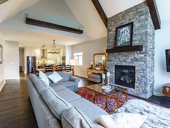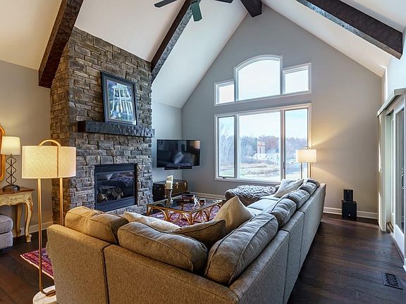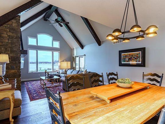 Everything sparkles in this Lake James villa! A totally renovated interior makes this home "like brand new" with top shelf quality throughout! All new kitchen with an updated floor plan to include a walk-in pantry, island with breakfast bar, new custom cabinetry, stunning quartz counter tops, tile backsplash, stainless appliances, double wall oven, gas cook top with stainless hood and a porcelain farmhouse sink. Open concept with fresh paint, new lighting fixtures and all new engineered hardwood flooring throughout the home with tile in the bathrooms and high impact flooring in the new exercise room. Cathedral ceilings in the living room with new hand scraped wood beams, new stack stone gas fireplace and slider to the lakeside deck featuring a motorized retractable awning. Main level owners suite is lakeside with deck access, an all new bathroom with walk-in tile shower, double sink vanity, new cabinets, quartz vanity top and a large walk-in closet. The lower level family/rec room includes a new wet bar, home gym, an updated guest bathroom and an enclosed porch that leads to the lakeside patio. The wet bar has a concrete counter top, custom cabinets, stacked stone bar front, two undermounted beverage refrigerators, an ice maker, two flat screen TVs, stainless steel sink and dishwasher. The family room has a 2nd gas fireplace with new stacked stone and two flat screen TVs. Upstairs you'll find an open loft office, two guest bedrooms (one with a sitting area and private lakeside balcony), a bonus bunk room and an updated full guest bathroom. This is the only unit that has two boat slips and two wave runner slips. Docks are assigned by seniority at the annual meeting in April. HOA fees cover maintaining all common areas, docking, lawn mowing, landscaping, leaf & snow removal from streets, driveways & sidewalks leaving you with more time to enjoy lake life. Most furniture, exercise equipment and pontoon are available to purchase outside of real estate. Feature sheet in assoc. docs.