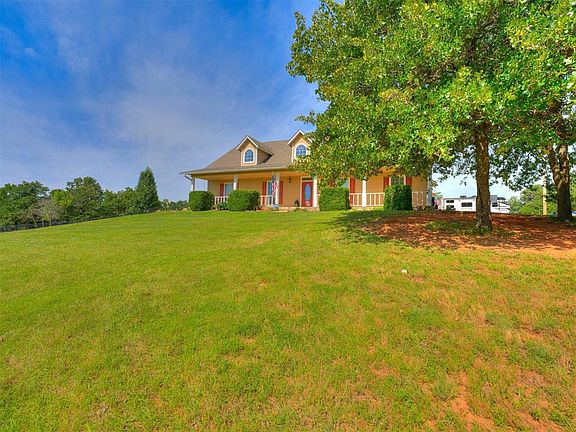 Welcome to your new private Oasis! This charming 3-bedroom, 2-bathroom house offers a spacious living area and sits on an impressive lot, 2.5 acres MOL, providing plenty of room for both relaxation and entertainment. Step inside to find fresh new carpeting throughout and an efficient layout that includes an office with a closet for the perfect work space or an additional bedroom. The kitchen opens seamlessly into the living areas, fostering a warm environment for gatherings. Experience the ultimate backyard leisure with a stunning pool featuring a waterfall and rock landscaping, a hot tub, and an outdoor TV setup complete with a custom storage box to protect your equipment. The 30x50 insulated shop with a wood-burning fireplace and electric is an ideal workspace or recreation area. Safety and convenience are paramount with a storm shelter and a wash sink located in the oversized two car garage. The property is well-equipped with flood lights, security system, and a fenced yard, ensuring both privacy and security. Located just outside city limits, enjoy the tranquility of rural living and being less than a mile from the West Watkins boat ramp. Whether you’re looking for a home with all the conveniences for daily living or a splendid retreat close to nature, this property promises to be a place where memories are made!