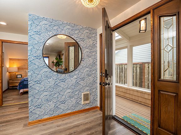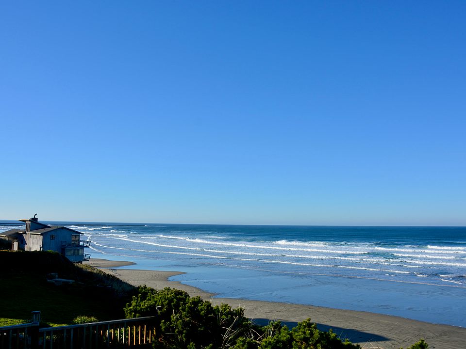 Ocean front central Newport home! It's a 3 bedroom, 3.5 bath, home with grand ocean views from multiple rooms and from the ocean front Trex deck. The high bank ocean front views extend from Newport's Jetties to the Yaquina Head Lighthouse. The home is clad with recently stained cedar shingles. The Ocean view entry area also houses a bar. Windows along the west wall of the living/dining room and the bay windowed nook give lots of natural light. There's a gas fireplace with a custom mantle that hides electronics. The nook has bay windows for an even bigger view and opens to the oceanfront deck. The kitchen has a new knotty pine ceiling and ocean views. On the main floor, you'll also find a custom half bath with shiplap detail, live edge countertop with resin pour and glass vessel sink and a den/office/bonus room with vaulted ceiling, skylight and knotty pine shiplap. The basement floor has a family room with three windows, can lights and it's wired for surround sound along with a bedroom and full bath. The upper floor houses the laundry room and a storage area. The primary bedroom occupies the northwest corner of the upper floor and has amazing views! There's a walk in closet and the primary bath has a shower, separate tub and two sinks. Bedroom 2 gives a view to the southwest and it has an ensuite full bath. Located near the Nye Beach district, Yaquina Bay State Park and Newport's ocean beaches!