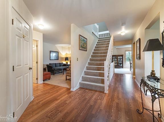 Another "hidden gem" with no neighbors behind - just green space with large trees! Terrific open floor plan and beautiful newer kitchen with white cabinets, granite countertops, stainless steel appliances, and easy to maintain wood laminate floors. The two-story family room with brick fireplace and bookcases opens to an inviting screened porch! Perfect sized dining room for entertaining or quiet evening dinners. Two master suites - each with private bathrooms and lots of closet space. If you're looking for a great home-office space, there is large partially finished basement. Great neighbors and peaceful yet convenient location make this a great place to call home!