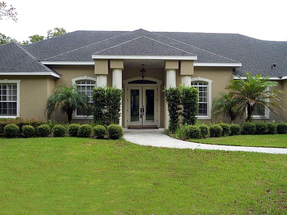 Tuscawilla area custom built one story home with 4500 sq feet of living area on 2 1/2 wooded acres on a quiet private road among lakefront estates and horse ranches. Built in 2006, with every attention to detail, this home boasts: 5 bedrooms 4 baths, bonus room, sun room/playroom and 3 car garage. Beautiful kitchen w/custom cherry cabinets, granite counter tops, back-splash, high-end appliances (range oven,separate oven,warming drawer, convection microwave, pot filler) breakfast bar and nook. The kitchen is open to the spacious family room with stacked stone fireplace leading to a sunroom/teen video/child's playroom. Brazilian walnut flooring is in the living room, dining room, foyer, study/ fifth bedroom, master bedroom and giant bonus room/media room. Travertine flooring is in the kitchen, nook, family room, sun-room, hallways and all baths. A giant media bonus room includes a mounted movie screen. The huge master bedroom features a luxury bathroom with walk in shower, separate tub,upgraded vanity and fixtures. The custom closet features beautiful cherry cabinetry and drawers. 10 elegant french doors are found across the back of the entire house. Plantation shutters, crown molding, 7" baseboards, high end lighting and 8' doors are throughout the house. 3 car garage, back porch whole house generator, central vac, water softener. Tons of room to build a guest house, additional garages and/or a spectacular pool and outdoor living space. Plenty of room to build a guest suite or keep your horse. No HOA!