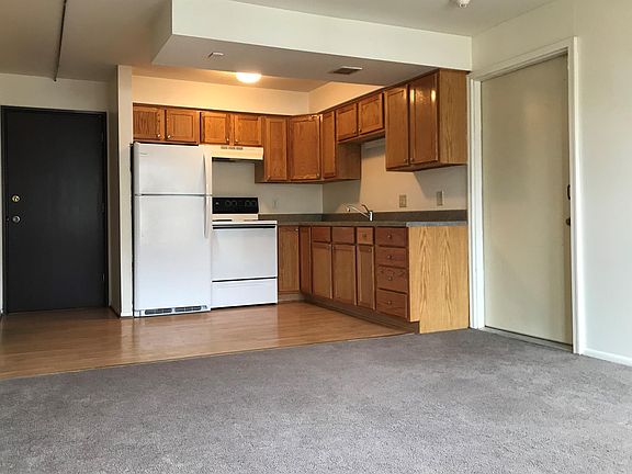 JUNE 1, UWP/Platteville - LAST UNIT! 3-story brick building with courtyard 3-4 blocks from UW-Platteville. Apartment bath has open double sink area and private toilet and bath/shower area with door, so multiple residents can access the facilities at the same time. Carpeted apartment with wood laminate in kitchen and tile in bathroom. Tenant pays electric only - landlord pays heat, water and trash removal. Pets accepted. Tons of parking! Multi-Unit - Platteville. 3-story brick building with courtyard, large parking lot and tons of green space. Four-five blocks from UW-Platteville. Tenant pays electric. Ask about your pets.