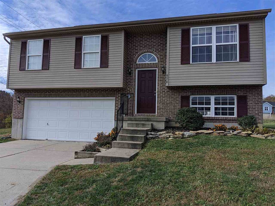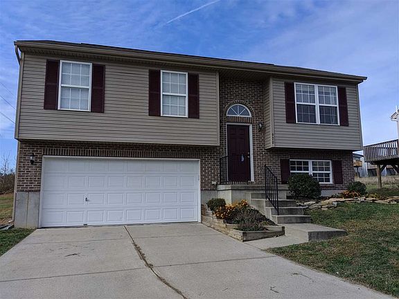 Cathedrial ceilings, stainless steel appliances. Wood deck over looks level backyard. Oversized 2 car garage. One Year Home Warranty Included.