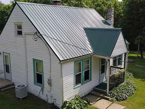 Built in 1945, 1 bathroom, 2 bedrooms downstairs, 1 bedroom upstairs. Has fireplace with gas logs, and a lined chimney in the dining room perfect for a woodstove. Kitchen has new cabinets, with room for a table or added cabinets. Heat pump heats in the winter and cools in the summer. Unfinished basement under the kitchen with whole house water filter. New metal roof. Well insulated. Three exit doors each with self storing storm doors and dead bolts for security.