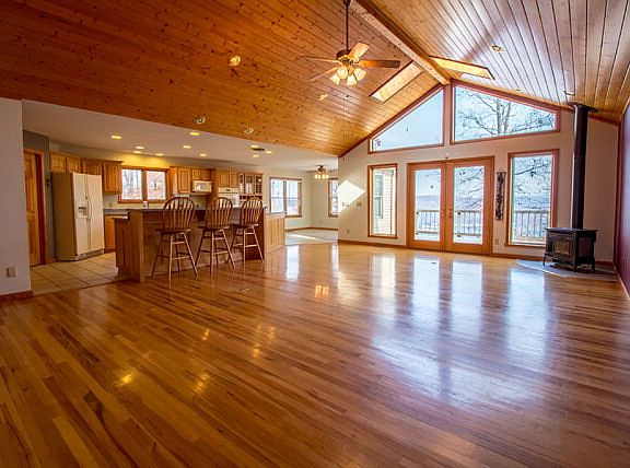 THE DALE HOLLOW LAKE VIEW WOW factor is IMMEDIATE as you enter the great room as all attention is focused on the trophy vista. Walls of windows maximize the stunning view in practically every room from master suite to living, dining, & kitchen. Gleaming hardwood floors and vaulted tongue and groove ceiling accents the open floor plan. 3 beds and 2 baths on the main level, lower level with 4th bedrm, full bath, pool table/game room and a 1000 squ.ft. of semi finished space with endless possibilities. Master suite is XL W/ jet tub, double vanity, shower & walk in closet. Kitchen is large, equipped with double oven, gas cook top, bar eating and breakfast nook. BIG laundry and walk in pantry. Huge covered front porch, big deck for entertaining and super cool flagstone patio with outdoor fireplace, 2 car attached garage AND 2 car detached garage (for lake toys/ATVS) all perfectly placed on private 10 acres dotted with shady hardwoods.