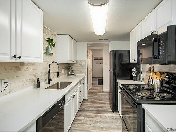 Step into this move-in- ready ground-floor condo with all the modern vibes you could hope for in your home! Get ready to be wowed by the beamed ceilings, snazzy updated bathrooms, and spacious closets. Slide open the patio door to your own private outdoor space, perfect for sipping morning brews or hosting fancy alfresco feasts. Plus, there's a bonus room that could be your dream office, cozy woman/man cave, guest room, or an extra snooze spot. The primary suite is a real jackpot with an expansive closet with trendy barn door leading to a luxe bathroom with double sinks and a tub/shower combo. Don't forget about the in-unit laundry and your very own covered parking spot. Life gets even sweeter with most bills covered by the HOA, including electricity, gas, water snow removal and trash. Bonus: you're just a stone's throw away from the High Line Canal Trail, parks, shops, eateries, public transit, and major roads.