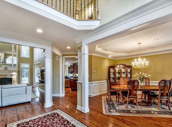 This distinctive, custom-built brick home is situated on a private wooded cul-de-sac lot in "The Manor". Impressive 5 Bedroom, 4.5 Bath home with 3-car attached garage. You're greeted with a grand 2 Story Foyer. Hardwood floors carry throughout the 1st floor except the Master Bedroom and Den. The Formal Dining Room features crown molding, a tray ceiling and wainscoting. French doors provide privacy to the Den with stained half panels and custom cabinetry. The 2 Story Family Room with marble fireplace equipped with a wet bar. The Chef's Kitchen presents granite counter tops, stainless steel appliances and a walk-in pantry. Sun Room includes cathedral ceilings, fireplace and provides access to the expansive back deck. Spacious 1st Floor Master Suite offers a cathedral ceiling, fireplace, ceramic tile shower, double vanities and large walk-in closet. Laundry room is conveniently located on the second floor. Enjoy the outdoor deck that is surrounded by trees and leads to the fire pit area.