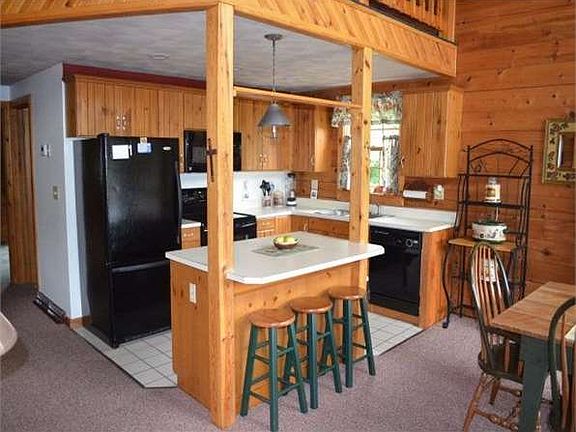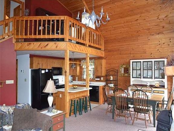 BEAUTIFUL VISTAS from the decks of this log home at the edge of town. 3 BR, 2 bath home has a stone fireplace, w/ pellet stove, window walls, cathedral ceiling. Master BR suite on 2nd floor w/skylights. 2 car integral garage & family rm. New efficient heat pump, water heater. $244,900. #2813194.