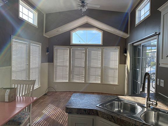 Located in Apache Family Campground near the pool, basketball courts and the ocean!! Has a large primary bedroom and large bathroom, second bedroom and bath, 2 lofts, eating nook, kitchen, living space and screened in porch. The house has a lot of storage space, a dedicated pantry and large capacity washer and dryer. There is also an “alley” for a golf cart and storage unit!! Lot rent if $7,300 is paid until May 31, 2025. The lot rent includes cable, internet, trash pickup and water. There is a transfer fee of $10,000 payable to Apache. Immaculate house.