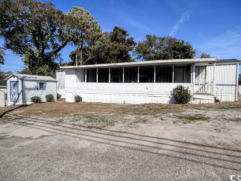 Presenting a fantastic opportunity to own in Apache Campground - a beloved Oceanfront community in Myrtle Beach. This 2-bedroom, 2-bathroom home sits on a coveted corner lot just a few rows back from the ocean. The home has a large covered porch, open concept living space, a sizeable walk in laundry room and each bedroom has a walk in closet. Outside you will find a detached storage shed that's perfect for storing all of your beach equipment! This home is perfect for someone who is ready to put a little love into creating their perfect coastal oasis! Apache campground offers a unique blend of coastal living, community charm, and endless recreational opportunities. Apache amenities include; The Apache fishing pier, community pool, Groupers Restaurant, general store, arcade, laundry facilities, 6 outdoor bath houses, fire pits, playground and much more!