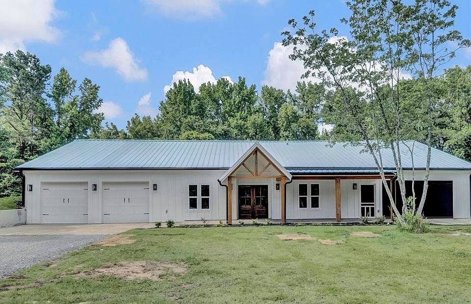 Private lakeMeticulously renovated barndominiumSingle-level livingScenic walking trailExpansive grounds