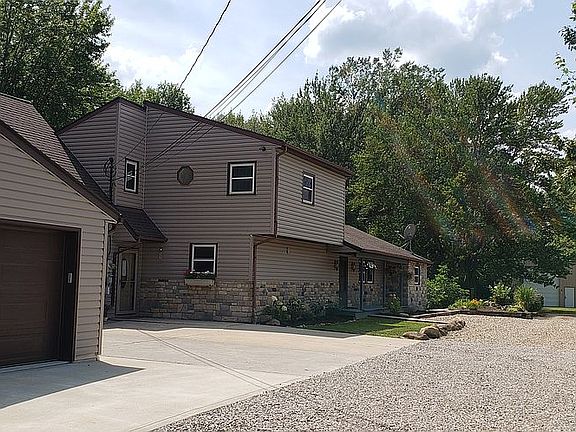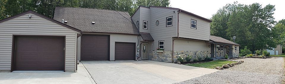 This 2,549 SF home sits on almost 1 acre of lush land. Built in 1954, this unique colonial features stone/vinyl siding, large flower beds, new landscaping, high ceilings, & ample storage space. Quiet, private, and backs up to the 14th hole of the Creekwood Golf Club. This backyard oasis is truly the gem of this home & boasts a spacious covered patio with plenty of room for outdoor furniture, a perfect sized deck with pool, a 50x30 steel barn, a dog kennel fence installed in 2020, & gorgeous wooded views. The open floor plan seamlessly combines the great room with skylights & a cozy brick fireplace, & eat- in kitchen. The kitchen boasts granite countertops, bamboo flooring, tile backsplash, with under cabinet lighting. Appliances include a double oven, induction stovetop, & microwave. Adjacent to the kitchen, you will find white french doors that open up to the additional in law suite. The first floor also includes a full bath with washer & dryer, half bath, & 2 additional bedrooms. Placed on the second floor you will find the spacious master suite with a homeowners dream closet with a full bath attached. Other recent features & upgrades include recently replaced manifold & 5 thermal actuators on radiant heating system, 3 new digital thermostats were installed, expansion tank added to water heater, new plumbing in upstairs bathroom shower, & 3 car heated garage to the house with 2 office spaces. Get away from the city life and schedule your private showing today!
