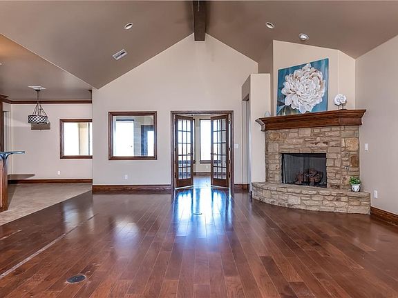 Look at that curb appeal! From the moment you enter get ready to be impressed with an abundance of natural light, gorgeous wood floors throughout, and stone fireplace in the open concept living. Get ready for entertaining in this gourmet kitchen with plenty of seating around the center island, stainless steel appliances, and an abundance of storage. The wood floors continue into the primary bedroom with an enormous master En suit with walk in shower, double sinks and custom vanity, with a walk in closet that extends direct access to the laundry room. Let the entertainment continue though the bonus all seasons room with window surrounds that lead to the large extended patio, huge yard, and lakefront lot that is simply stunning. This home has so much to offer with a full bath upstairs, designated office, safe room in garage, New carpet and paint throughout, & justseconds of all of your favorite restaurants and easy highway access. Don't miss out today!