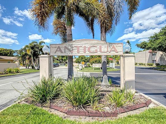 Beautiful Antigua! Across from the Bardmoor Golf and Tennis Country Club community, this is a 2 bedroom, 2 bathrooms & 1 carport condo located in the Antigua Condo community. You will be very pleased with the size of the rooms and the wonderful location overlooking the tennis courts. Nice living-dining room combo, big kitchen and two good size bedrooms (both with a large walk in closets). Condo is very well maintained! Additionally you have a separate room for your washer and dryer and extra storage; plus cozy screened patio. The association dues are $354 per month and include building exterior, cable TV, community pool, tennis courts, clubhouse, ground maintenance, building insurance, roof, trash removal, water/sewer. Community features heated pool, tennis courts, large clubhouse with separate kitchen and area for private parties, and a small library. Cannot rent until after 1 year of ownership. Small pet less than 20 pounds allowed. Unit offers 1 Carport parking space and there are plenty of guests parking. No age restrictions. Only 15 minutes from the beaches, this condo will make a wonderful year round home or an awesome snowbirds getaway! Seller is leaving for Buyers beautiful glass and metal dining table with 4 chairs (see pictures). You will not be disappointed with your purchase!