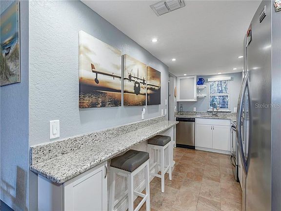 Do you desire maintenance-free living without giving up the comforts of luxury? Welcome Home! Antigua is a small condo community located in beautiful Seminole, minutes from our sandy Gulf beaches or the exciting Seminole City Center offering a movie theater, casual dining and a variety of shops. Pull in to this community and notice the perfectly manicured grounds, offering a heated pool, tennis courts, HIS and HERS saunas, a clubhouse and fountain pond. Residents enjoy covered parking while guests will find an abundance of open spots. #325 is found in the back of the community for ultimate peace and privacy. This second floor unit offers beautiful fountain pond views without the disturbance of a neighbor above you. Enter the front door and notice that not a detail went untouched. Gorgeous tile floors accent the wet areas and balcony and rich wood laminate floors are found in the living areas and bedrooms. New windows allow tons of natural light and create energy efficiency and storage space abounds! An updated kitchen offers Shaker cabinets, granite counters, modern appliances and a breakfast bar, as well as a large pantry closet. The living and dining area flow nicely through sliders to the large balcony, extending the living space. Both bedrooms feature walk-in closets and are found on opposite ends of the condo for added privacy. The master and guest bath are consistent with gorgeous tile work and plenty of vanity space. An exterior laundry room offers private W/D hookup and more storage.
