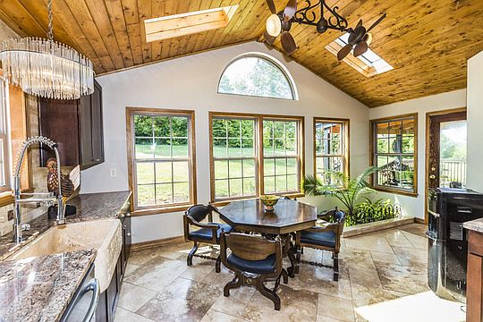 Beautiful 3916SF Bavarian Chalet w/ storybook charm surrounds itself on 2.6 mostly level acres in a very desirable part of town, Seven Oaks W S/D. Old World Manor w/ all new modern Conveniences designed for comfort & entertaining. Greet your guests in the Hearthroom, invite them to Pub designed w/a large horseshoe copper top bar & elaborate decorative woodwork. This home was designed w indoor as well as outdoor entertaining & relaxation in mind. Enjoy the sunroom and all its expansive windows, or the covered deck to enjoy the peaceful landscapes the property offers. Outdoor enjoyment from all sides of the home including a large greenhouse. The interior is graced w/ coffered ceilings, exposed beams as well as tongue & groove ceilings, 2 firepls, one gas, one wood burning.
